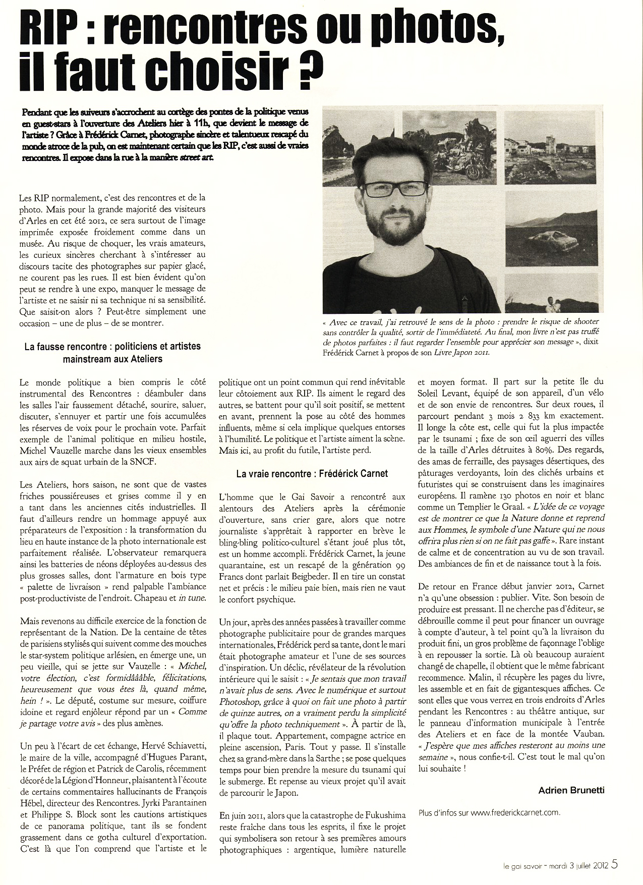 Interview Frédérick Carnet - sep. 29 2012 par yellowcultureclub